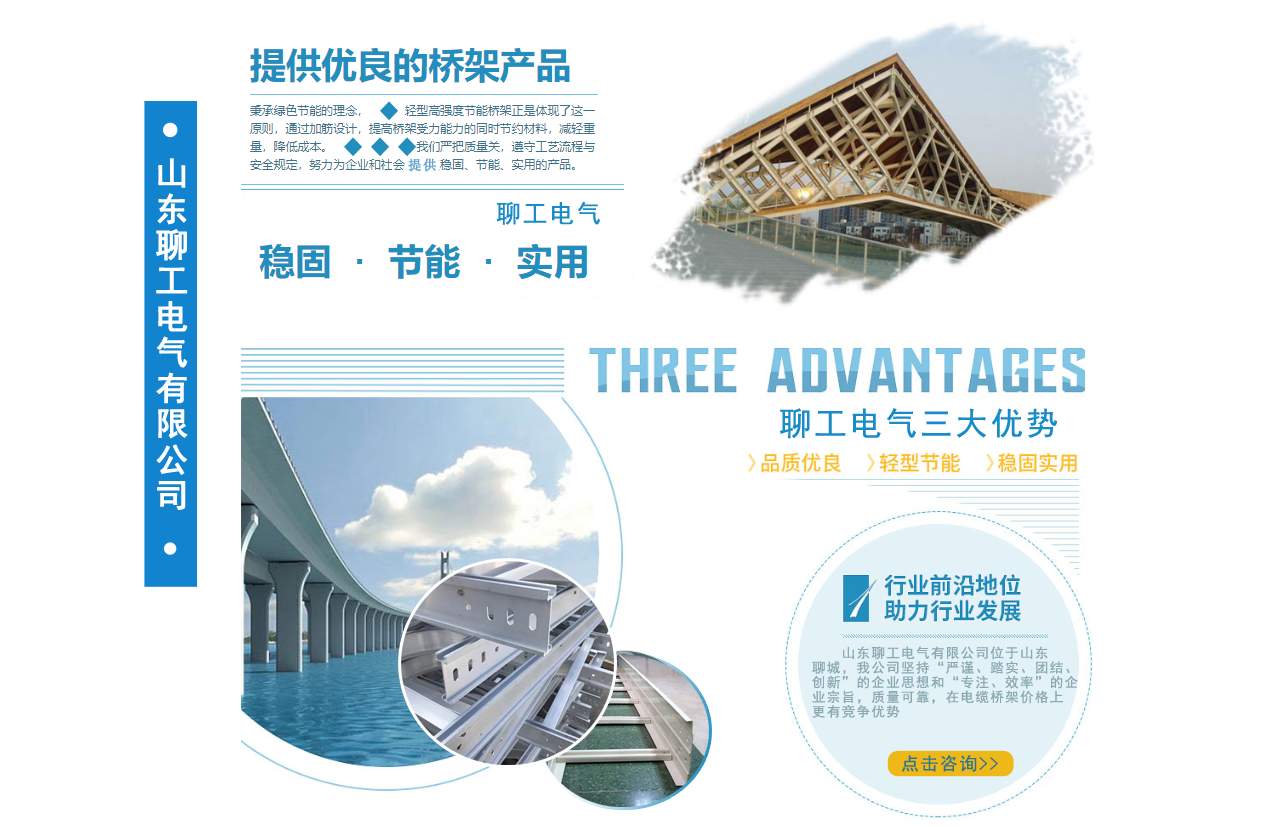 山東聊工電氣有限公司位于山東聊城,是一家銷(xiāo)售各類(lèi)橋架的公司,公司主營(yíng)鍍鋅防火噴塑橋架,鍍鋅防火電纜橋架 ,不銹鋼電纜橋架,熱浸鋅電纜橋架,鋁合金電纜橋架,熱鍍鋅電纜橋架,梯式電纜橋架等我公司堅(jiān)持“嚴(yán)謹(jǐn)、踏實(shí)、團(tuán)結(jié)、創(chuàng)新”的企業(yè)思想和“專(zhuān)注、效率”的企業(yè)宗旨,質(zhì)量可靠,在電纜橋架價(jià)格上更有競(jìng)爭(zhēng)優(yōu)勢(shì)。公司追求品質(zhì),配有研發(fā)人員,進(jìn)行產(chǎn)品的改革和創(chuàng)新,服務(wù)先進(jìn)走出了一條富有企業(yè)特色的可持續(xù)化發(fā)展之路! 我公司鄭重向你承諾:保證最好的質(zhì)量,以低的價(jià)格,完善的售后服務(wù),來(lái)答謝新老客戶(hù)。可提前電話(huà)聯(lián)系。...